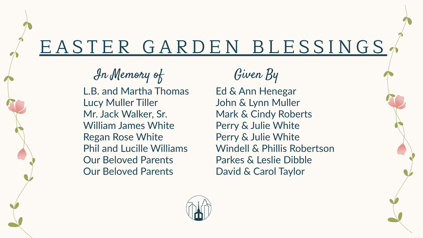 The slides below were created for streaming before our worship service on Easter, as well as for the television in the gathering space on Easter.